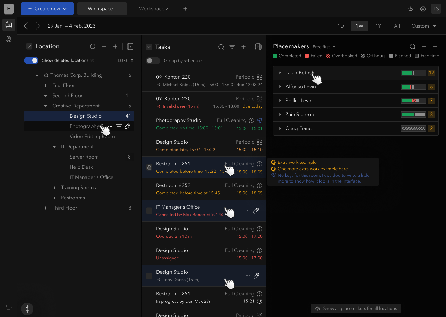 - Unified Smart Search: A global search bar for rooms, buildings, task names, or cleaners — all in one place.